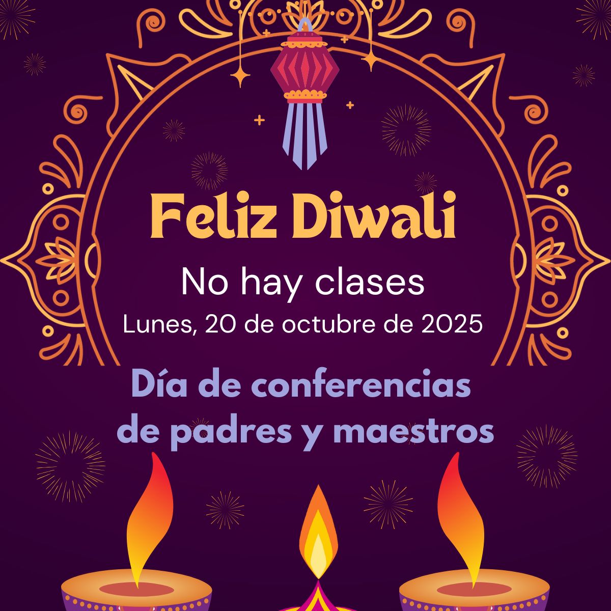 No habrá clases el lunes 20 de octubre de 2025 en conmemoración del día festivo de Diwali.