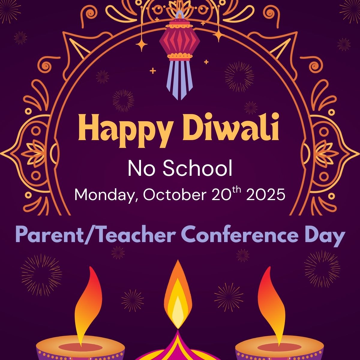 There will be no school on Monday, October 20, 2025 in observance of the Diwali holiday.