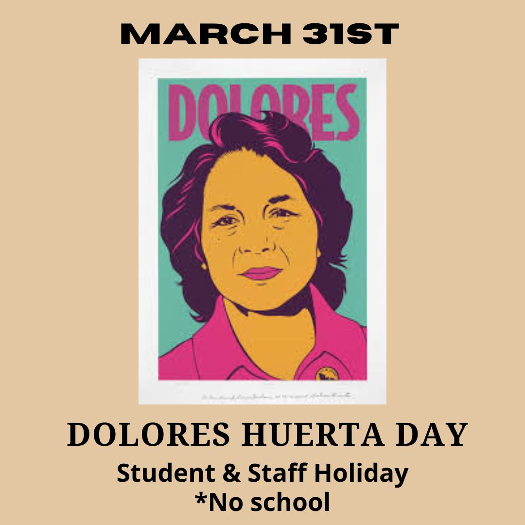 There will be no school for students or staff in honor of Dolores Huerta Day.