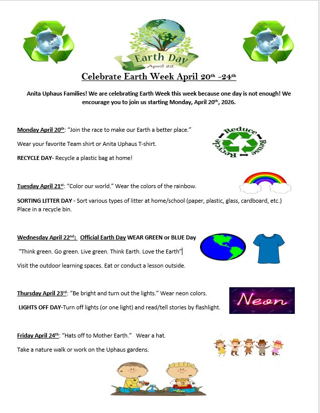 Join us for a week of fun activities that help us learn how to care for our planet.