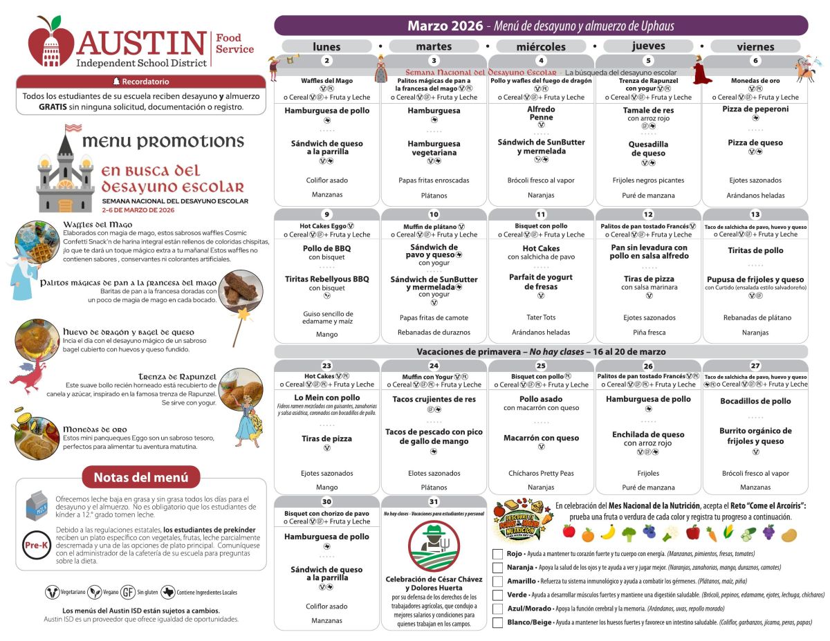 Las familias tambiĂ©n pueden encontrar los menĂşs más recientes haciendo clic en la pestaña de CafeterĂa en el menĂş desplegable de “Programas” en el sitio web de nuestra escuela.