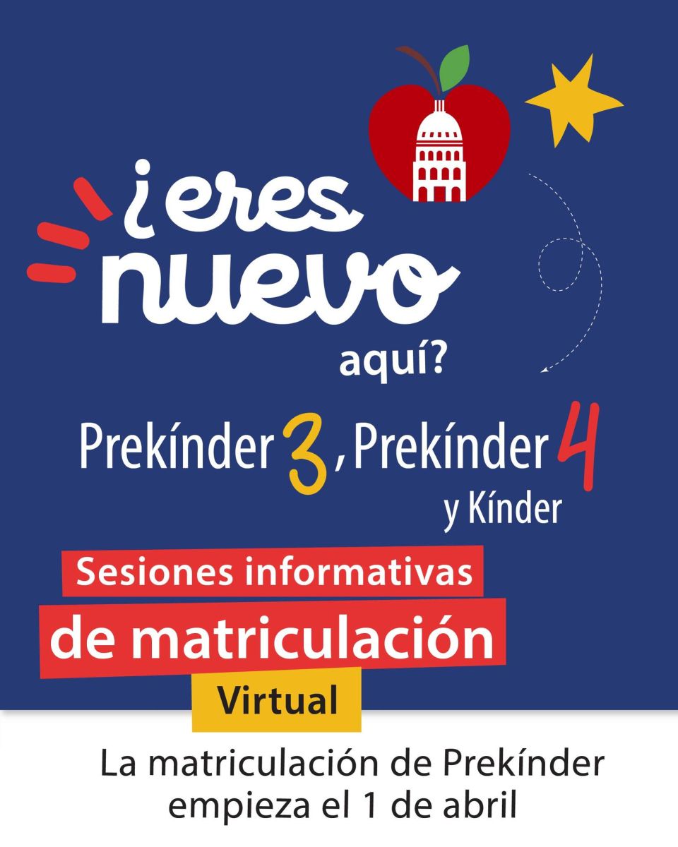 Recordatorio: La matriculación para prekínder comienza el 1 de abril. La matriculación para kínder ya está abierta.